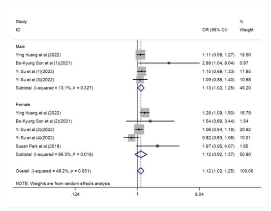 Forest plot for the subgroup of sex [,,,,].