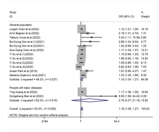 Forest plot for the subgroup of basic disease [,,,,,,,,].