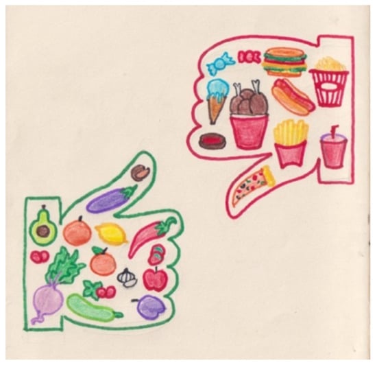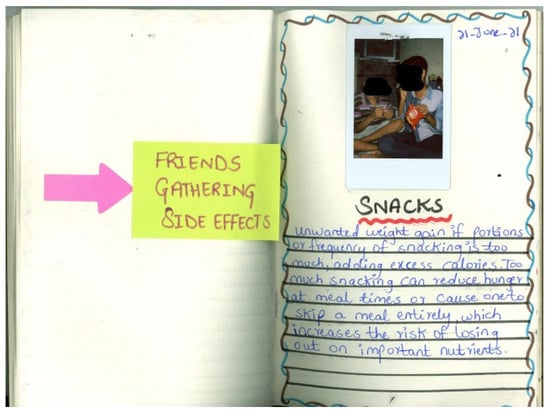 Making this diary was recognised as a learning experience where what food is healthy or unhealthy was the main—and possibly only—takeaway: “from this [diary making experience] I learned that the food which is good for us should be taken and what is not good should be avoided” (Laraib). Moreover, there was a sense of curiosity for nutrition-related knowledge and reflection amongst the participants regarding the whole experience. For instance, Mahi commented that she will find out more information about the food that she eats from now on. Similarly, Sulman stated that he feels confident about understanding “these nutrition things”, but if there is something that he does not know, he will make sure to “practise and understand it”. These are vivid examples of how the photodiary enhanced their ability to reflect on their dietary choices and empowered them to keep learning.