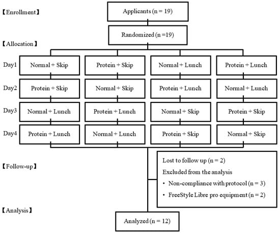 APA StyleXiao, K., Furutani, A., Sasaki, H., Takahashi, M., & Shibata, S. (2023). Effect of a High Protein Diet at Breakfast on Postprandial Glucose Level at Dinner Time in Healthy Adults. Nutrients, 15(1), 85. https://doi.org/10.3390/nu15010085