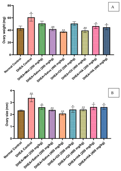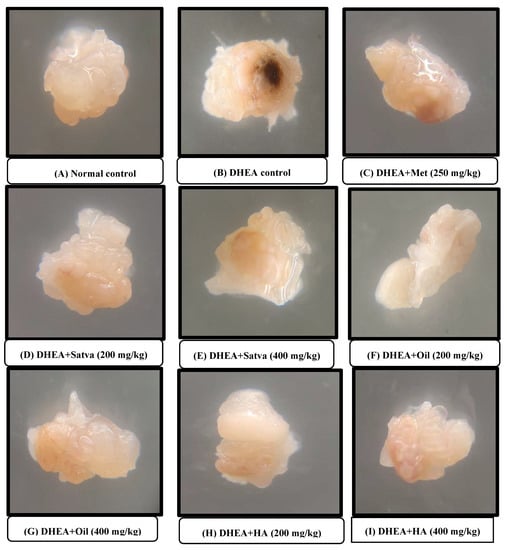 - Rababa’h, A.M.; Matani, B.R.; Ababneh, M.A. The ameliorative effects of marjoram in dehydroepiandrosterone induced polycystic ovary syndrome in rats. Life Sci. 2020, 261, 118353. [Google Scholar] [CrossRef]