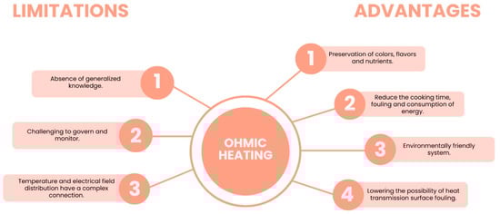 Advantages and limitations of using Ohmic heating (OH) in the extraction of bioactive compounds. Adapted from [].