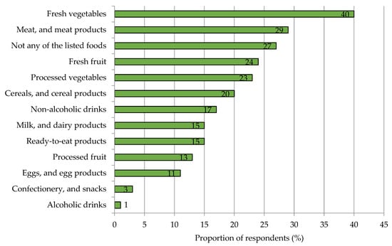 Two out of five participants assume that vegetables make a very large contribution to their personal iron supply. They were followed with a small margin in the rating by meat and meat products (37%), legumes (29%), seeds and nuts (25%), and fish and seafood (23%) (Appendix A, Figure A4). When respondents were asked which food groups they perceived to be most appealing to increase iron content for improving their supply with the micronutrient, fresh and processed vegetables were also the most frequently mentioned vegetables (63%). Fresh and processed fruits were the second most popular choice (37%), and meat and meat products ranked third (29%) (Figure 4). A total of 27% of respondents expressed a fundamental opposition to foods with increased iron content.