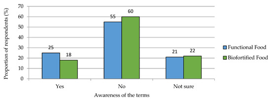 Only a relatively small proportion of respondents were familiar with the terms “functional foods” and “biofortified foods” (Figure 6).