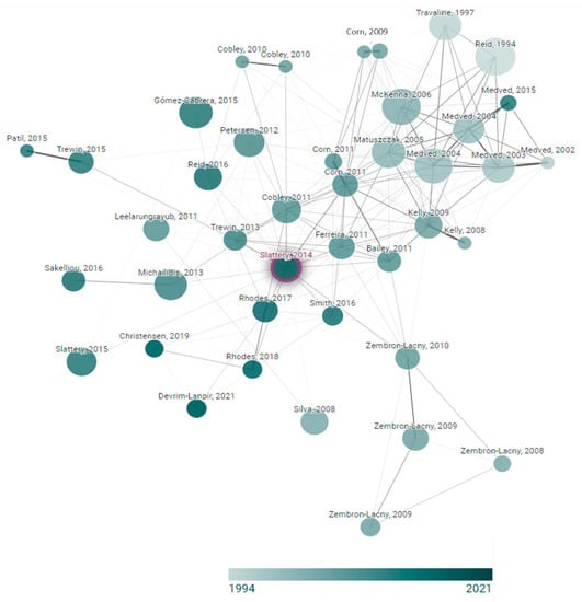 The review was completely independently carried out: titles, abstracts, and full texts; by two reviewers (D.F.-L., J.M.-A.). In addition, the inclusion criteria were independently assessed, and disagreements were resolved by a second reviewer (C.D.-O.). No additional records of reference lists of relevant articles or grey literature were made. In addition, two study investigators constructed a network graph using the Connected Papers website (www.connectedpapers.com, accessed on 19 April 2023) to ensure inclusion of publications through visual characterisation of records.