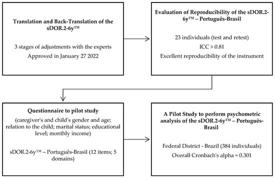 Flowchart of the steps to translate and perform the psychometric analysis of the sDOR.2-6y™ into Brazilian Portuguese (sDOR.2-6y™—Português-Brasil).