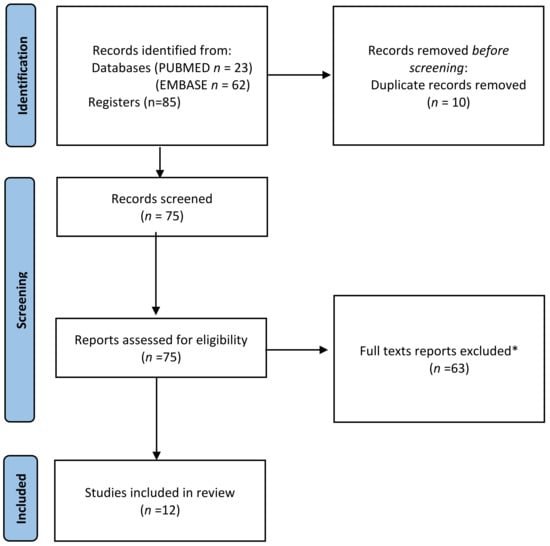 PRISMA (Preferred Reporting Items for Systematic Reviews and Meta-Analyses) flow diagram for studies retrieved through the searching and selection process. * The reasons for the exclusion of articles were reflected in Section 2.