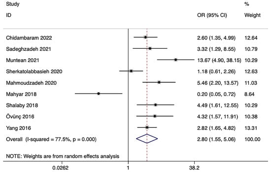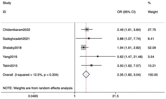 | Sadeghzadeh 2021 [28] | case–control | Iran | 40/40 | 1–12 y | _ | _ | 30/19 | Adjusted OR: 2.884 (1.075, 7.738) | 7 |