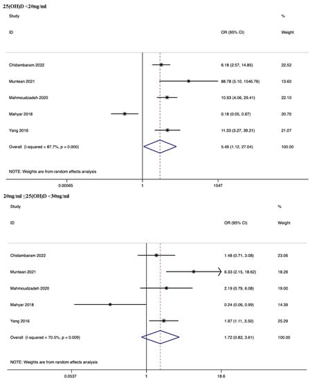 3.3.1. Meta-Analysis of Serum Vitamin D Levels
