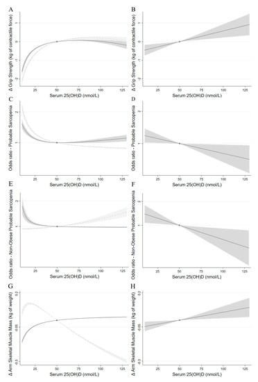 - Pinto Pereira, S.M.; Garfield, V.; Norris, T.; Burgess, S.; Williams, D.M.; Dodds, R.; Sayer, A.A.; Robinson, S.M.; Cooper, R. Linear and Nonlinear Associations Between Vitamin D and Grip Strength: A Mendelian Randomization Study in UK Biobank. J. Gerontol. Ser. A, 2022; in press. [Google Scholar] [CrossRef] [PubMed]