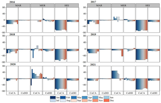 Deviation of dietary nutrient quality in CA and BD compared to the balanced diet pattern. If MAR, MER, and HEI levels are lower than those under a balanced diet, it shows a negative deviation, and a larger deviation indicates a lower nutritional level; conversely, a positive deviation indicates a higher nutritional level than the level under a balanced diet.