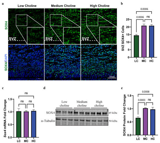 Our observations confirmed that the hippocampus and cerebral cortex development depend on choline availability. Here, for the first time, we are linking choline availability as a mechanism to regulate SOX4 expression.