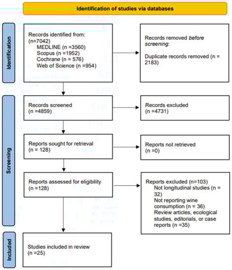 APA StyleLucerón-Lucas-Torres, M., Saz-Lara, A., Díez-Fernández, A., Martínez-García, I., Martínez-Vizcaíno, V., Cavero-Redondo, I., & Álvarez-Bueno, C. (2023). Association between Wine Consumption with Cardiovascular Disease and Cardiovascular Mortality: A Systematic Review and Meta-Analysis. Nutrients, 15(12), 2785. https://doi.org/10.3390/nu15122785
