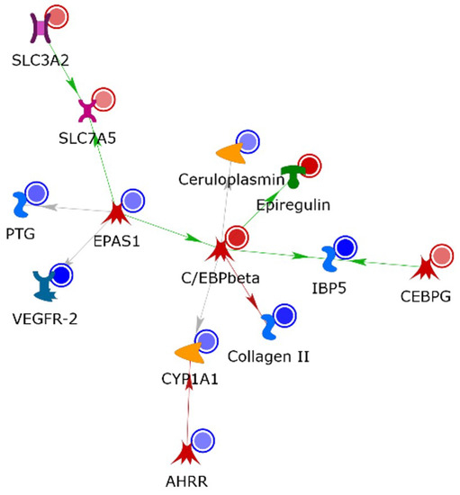 | Endothelial PAS Domain Protein 1 | EPAS1 | −4.54 | 4.35 × 10−106 |
