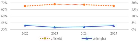 In 2022, the urbanization rate, , reached 65.22%, 0.50 percentage points higher than the 2021. According to the 14th Five-Year Plan (2021–2025) [65], the urbanization rate of China’s permanent population was expected to reach at least 65% by 2025. Jiangsu Province had set a goal of achieving an urbanization rate of 75% by 2025, while Shandong Province aimed for 68%. Using the projections in [65] and taking into account the impacts of COVID-19, we set to be 66.8% in 2023, 67.7% in 2024, and 68.6% in 2025.
