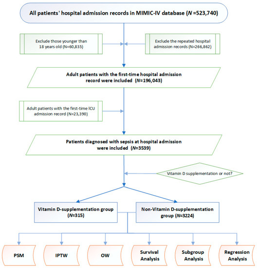 The variability in existing results may be due to the heterogeneity of the critically ill population. Hence, in this study, we aimed to explore whether patients with sepsis admitted to ICUs between 2008 and 2019 at the Beth Israel Deaconess Medical Center (BIDMC), can benefit from the supplementation of vitamin D to improve their prognosis.