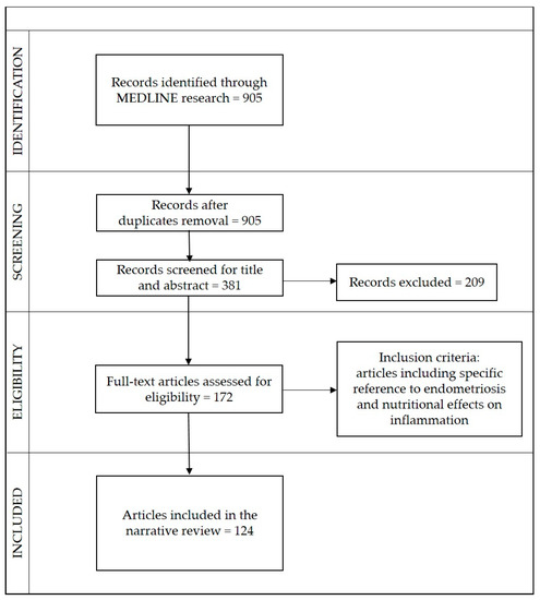 - Arab, A.; Karimi, E.; Vingrys, K.; Kelishadi, M.R.; Mehrabani, S.; Askari, G. Food groups and nutrients consumption and risk of endometriosis: A systematic review and meta-analysis of observational studies. Nutr. J. 2022, 21, 58. [Google Scholar] [CrossRef]