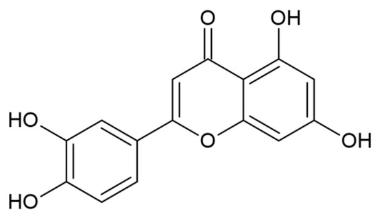 Luteolin (3′,4′,5,7-tetrahydroxyflavone, LUT) is a natural flavone which can be found in different plants, nuts, and herbs [100,101]. Chemically, it is composed of a C6-C3-C6 carbon skeleton with two benzene rings linked by a heterocyclic ring [102] (Figure 5).