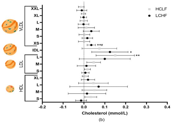 | Triglycerides in HDL (mmol/L) | 0.13 ± 0.05 | 0.10 ± 0.03 | 0.12 ± 0.03 b | −0.03, 0.02 | 0.13 ± 0.04 | 0.12 ± 0.02 | 0.12 ± 0.03 | −0.03, 0.01 | 0.470 | 0.041 | 0.335 |