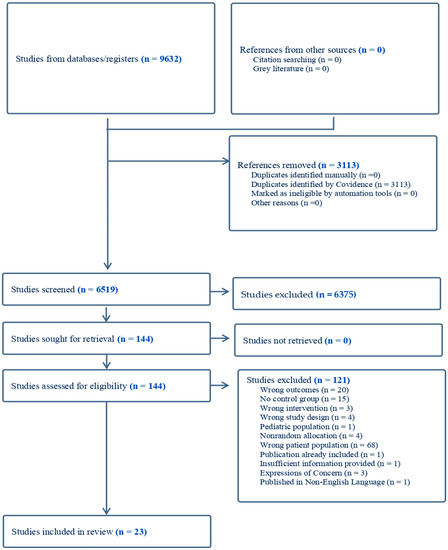 - Page, M.J.; McKenzie, J.E.; Bossuyt, P.M.; Boutron, I.; Hoffmann, T.C.; Mulrow, C.D.; Shamseer, L.; Tetzlaff, J.M.; Akl, E.A.; Brennan, S.E.; et al. The PRISMA 2020 statement: An updated guideline for reporting systematic reviews. BMJ 2021, 372, n71. [Google Scholar] [CrossRef]