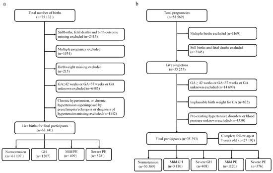 Study flowchart. (a) The China Labor and Delivery Survey. (b) The United States Collaborative Perinatal Project.