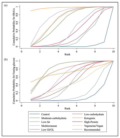 Currently, some pairwise meta-analyses have shown that dietary patterns, both dietary macronutrient and popular food-based dietary approaches, are effective in controlling glycemia, including HbA1c and fasting glucose [,,]. However, others may show conflicting results for the effect of dietary approaches on markers of glycemia [,,]. In addition, newly emerging dietary patterns are now being used in diabetes interventions, and their actual differences in controlling blood glucose are not clear [,]. There is some controversy surrounding the ketogenic diet, but recently, the ADA included the use of the ketogenic diet as a viable therapeutic option for the treatment of T2DM patients []. What is more troubling is that the comparative long-term effectiveness of dietary macronutrients and popular food-based dietary approaches for glycemic control for diabetes patients has not been examined []. So, there is a great need to compare the long-term (≥6 months) effect of multiple dietary approaches (that is, three or more) on glycemia, and define the promising dietary pattern, in order to provide direct recommendations to relevant patients.