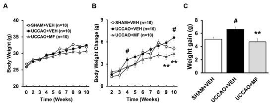 3.1. Effects of MF on the Body Weight