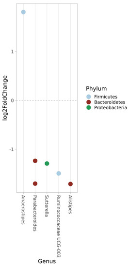 | Phylum | Genus | Log2-Fold Change | FDR |