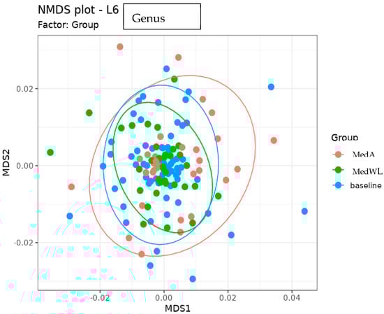 This study has several limitations. First, weight loss in the MedA group and the relatively small sample size may have made it difficult to detect between-group differences. Second, as this was a post hoc analysis, randomization was lost. This lessened the ability to determine the individual effects of the MedA and MedWL arms. Third, because individuals who took antibiotics or who were unable to provide a stool sample were excluded, the generalizability of the results are reduced. Fourth, dietary intake was self-reported, which may have caused participants to provide socially desirable responses, leading to the misreporting of diet. Another limitation was the use of the MED score, which was not designed to capture dietary diversity, as it coalesces all types of a particular food into one group. However, the diversity of foods has been shown to explain variation in the gut microbiome []. Thus, the MED score may have been limited in its ability to relate to changes in the gut microbiome.