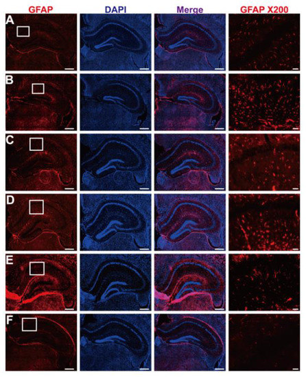 2.16. Glial Fibrillary Acidic Protein (GFAP) Immunostaining of Brain Tissue