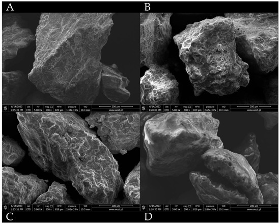 A differential scanning calorimeter DSC 8500 (PerkinElmer Inc., Waltham, MA, USA) was used to determine the glass transition phenomena. The device, which was equipped with an Intracooler II and was running under Pyris 10.1 instrument management software, was calibrated using the standards of indium (Tm = 156.60 °C, ΔH = 28.45 J/g, PerkinElmer Inc.) and n-dodecane (99.8 purity, Tm =−9.65 °C, Merck). The samples (approximately 5–6 mg) were weighed into 20 µL aluminum pans (PerkinElmer, No. 0219–0062, Waltham, MA, USA) and hermetically sealed. The analysis of glass transition involved the following steps: (1) holding for 1.0 min at 30 °C; and (2) heating from 30 °C to 300 °C at 5 °C/min. The reference was an empty, hermetically sealed aluminum pan. Glass transition, as a second-order phase transition, was identified by a step in the baseline of the measurement curve and registered as a heat capacity change (ΔCp, J/g °C) as a function of temperature. The glass transition temperature (Tg, °C) parameter was calculated as the inflection point. All samples were analyzed in two replicates.
