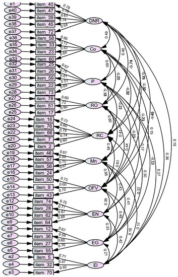 | Factor Names and Items in Spanish and English | DNR | EN | P | El | MT | Mn | OFV | Co | RO | EG | RC |