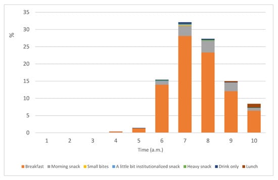 Time and type of morning intake among breakfast consumers (n = 1263).