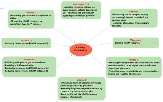 Nutrients mechanism in protecting against excitotoxicity.