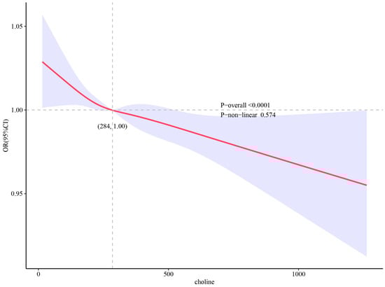 APA StyleZhou, R., Yang, M., Yue, C., Shi, Y., Tan, Y., Zha, L., Zhang, J., & Chen, S. (2023). Association between Dietary Choline Intake and Cardiovascular Diseases: National Health and Nutrition Examination Survey 2011–2016. Nutrients, 15(18), 4036. https://doi.org/10.3390/nu15184036