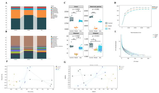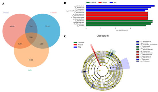 3.4. Effects of AAL on Taxonomic Composition and Intestinal Microbial Diversity of Gut Microbiota
