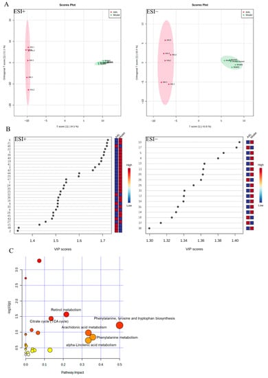 - Pang, Z.Q.; Chong, J.; Zhou, G.Y.; de Lima Morais, D.A.; Chang, L.; Barrette, M.; Gauthier, C.; Jacques, P.-É.; Li, S.Z.; Xia, J.G. MetaboAnalyst 5.0: Narrowing the gap between raw spectra and functional insights. Nucleic Acids Res. 2021, 49, W388–W396. [Google Scholar] [CrossRef] [PubMed]