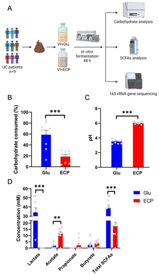 3.1. ECP Was Utilized and Fermented to Produce SCFAs by the Gut Microbiota of UC Patients