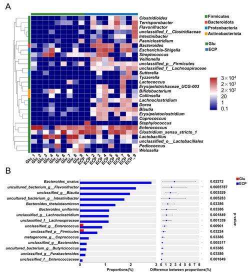 3.3. ECP Promoted the Growth of Anti-Colitis Bacteria, Including B. thetaiotaomicron, B. ovatus, B. uniformis, and Parabacteroides spp., during Fermentation