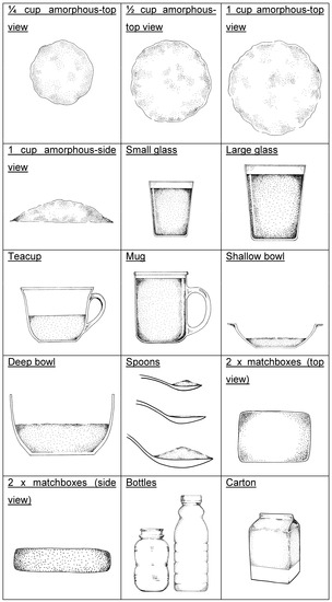 - Steyn, N.P.; Senekal, M.; Norris, S.A.; Whati, L.; Mackeown, J.M.; Nel, J.H. How well do adolescents determine portion sizes of foods and beverages? Asia Pac. J. Clin. Nutr. 2006, 15, 35–42. [Google Scholar] [PubMed]