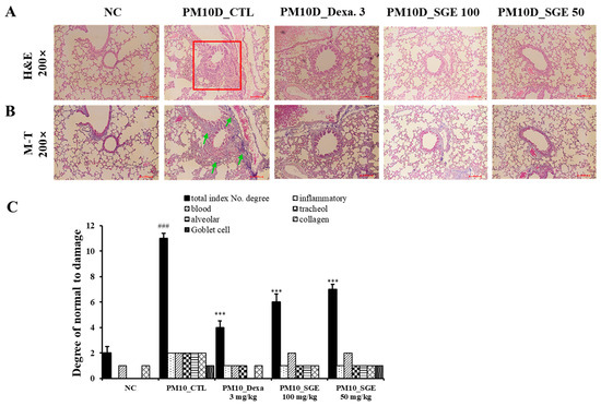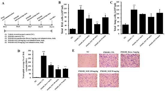 3.1. Effect of SGE on Neutrophil Infiltration in PM10D-Exposed Mice