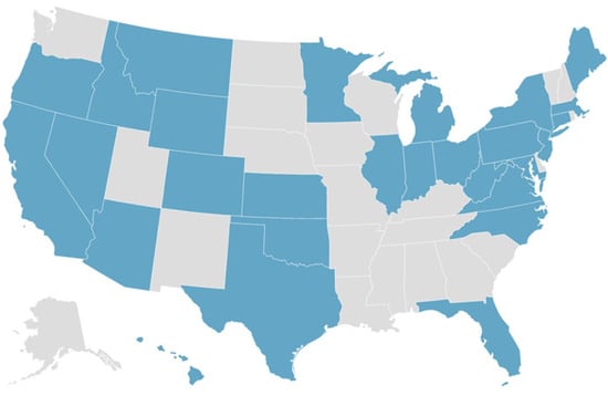 YPAOP students pursue training from their home communities and are located throughout the United States. The 80 YPAOP students in the study cohort represent 28 unique states, as shown in the map in Figure 2.