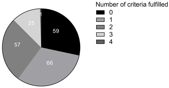 Number of “low probability of HIT” patients based on the number of inclusion criteria fulfilled.