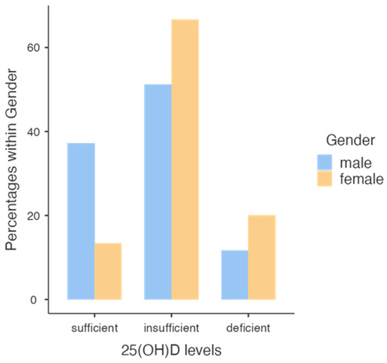Level classes of 25 [OH] D concentration reached in males and females.
