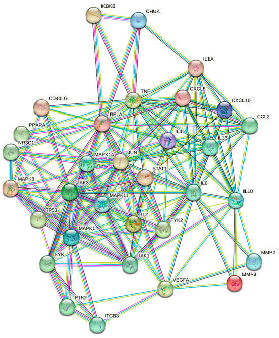 2.3. Protein–Protein Interaction (PPI) Network Analysis