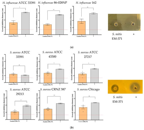 3.2. S. mitis EM-371 Inhibits the Growth of Bacterial Respiratory Pathogens In Vitro on Agar-Diffusion Test