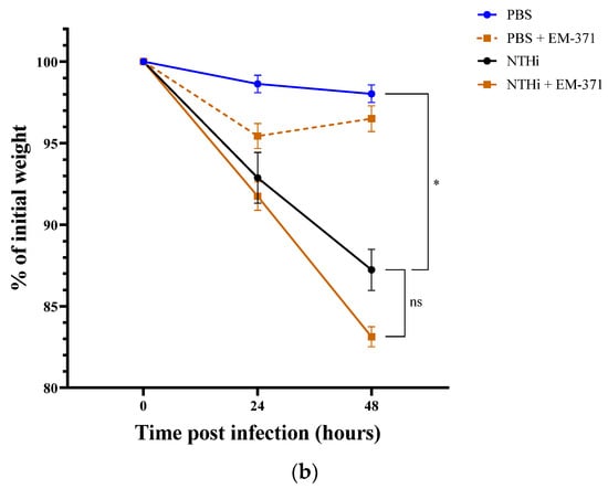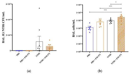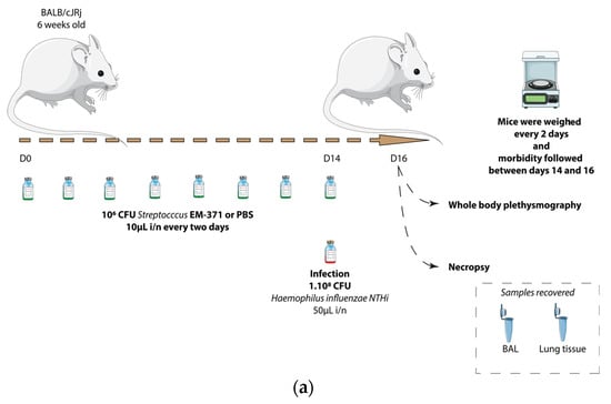 3.3. Preventive Treatment with S. mitis EM-371 Did Not Protect the Mice against Haemophilus influenzae (NTHi) Lung Infection in Mice