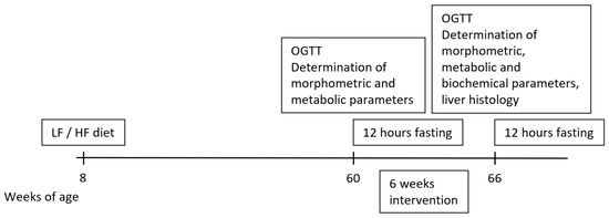 Colorimetric assays were used to determine plasma levels of cholesterol (CHOL), triglycerides (TG) (Erba Lachema, Brno, Czech Republic) and free fatty acids (FFAs) (Roche, Mannheim, Germany). The plasma insulin concentration was determined using a radioimmunoassay (RIA) kit (Millipore, St. Charles, MI, USA). Leptin and fibroblast growth factor 21 (FGF21) were determined using mouse and rat enzyme-linked immunosorbent assay (ELISA) kits (Millipore, St. Charles, MI, USA). An ELISA immunoassay kit was used to determine plasma levels of glucagon (Merck, Darmstadt, Germany). Glycated hemoglobin (HbA1c) was determined using the Tina-quant HbA1c Gen. 3 kit (Roche, Mannheim, Germany). All measurements were performed according to the manufacturer’s instructions. The concentration of c-reactive protein (CRP) in fasting plasma was determined using a Mouse CRP ELISA kit (Thermo Scientific, Frederick, MD, USA).