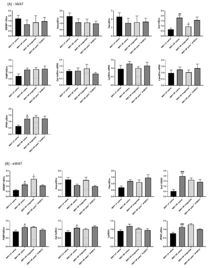 mRNA expression of the following genes was analyzed in adipose tissues and in the liver.