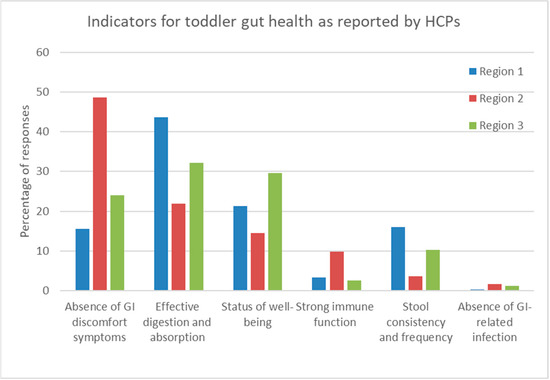 | 2. In your opinion, what will be the best indicator to assess healthy GI tract in toddlers: 1. Absence of GI discomfort symptoms i.e., no GER, no constipation + crying, no colic 2. Absence of GI-related infection 3. Effective digestion and absorption of food as indicated by normal growth 4. Status of well-being ie no excessive crying, good sleep during the night, good quality of life of the parents 5. Stool consistency and frequency 6. Strong immune function from inside due the optimal gut microbiota diversity 7. Others; please specify: _____________________ |